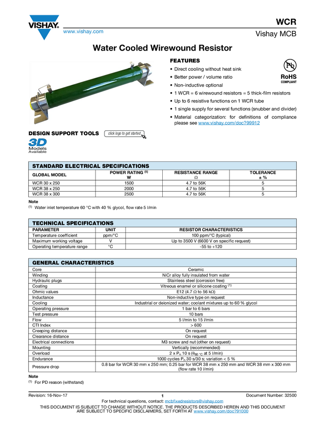 Power Resistors Cooled by Auxiliary Heatsink (Not Supplied) Thick Film Metal Technology