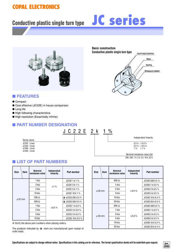 Potencjometr drutowy Servo 18; rezystancja 1 kohm 1 obrotowy; średnica 1-3/4"=44,45mm; gł.16,6mm; ośka 6 mm dł 20mm; trwałość 10 milionów cykli; liniowość 0,1%; rozdzielcz ość 0,1%; kąt 353 st.; tolerancja 5%; moc 1.3W;