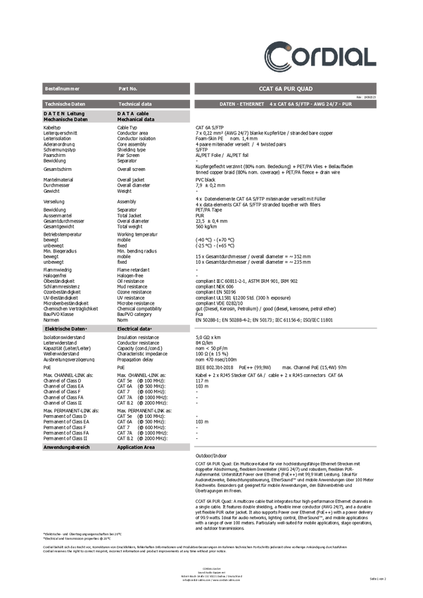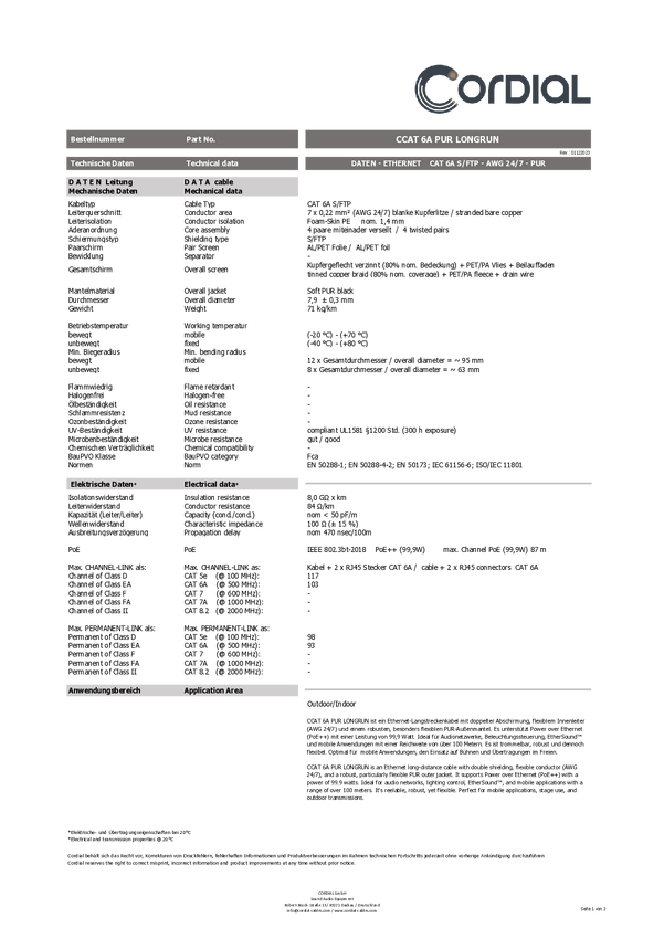 kabel LAN Cordial 15632, 1 szt., RJ45, CAT 6a, S/FTP, 75.00 m, czarny