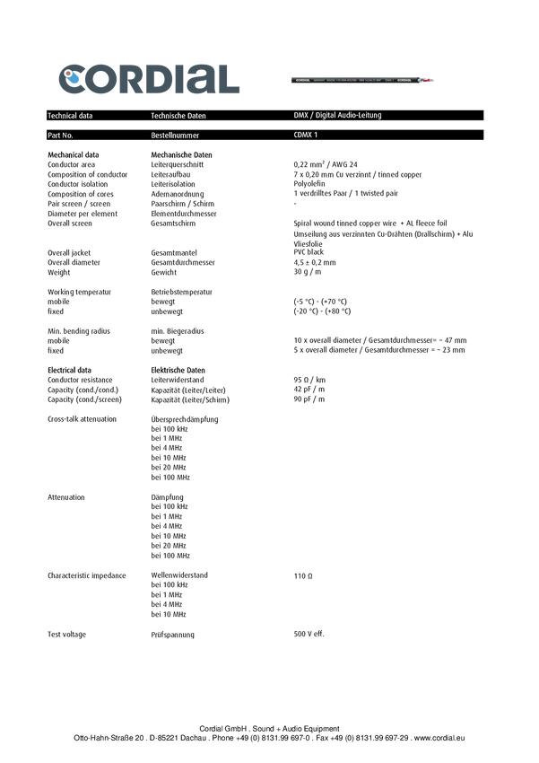 Cordial CDMX 1 BLACK 100 Przewód sterowniczy, 2 x 0.22 mm², Produkty w metrach bieżących