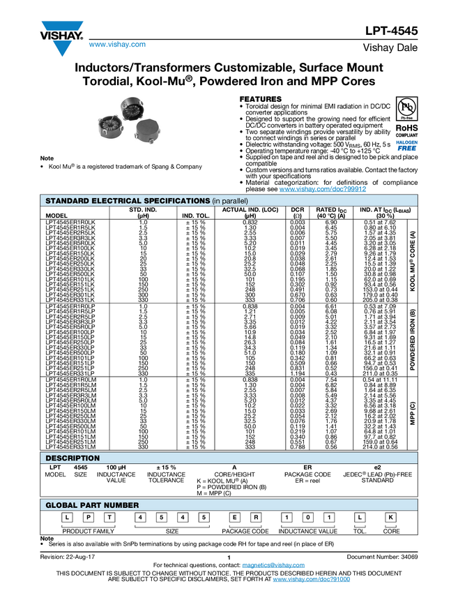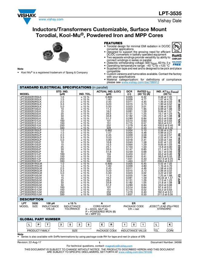 Inductors/Transformers Customizable, Surface Mount Torodial, Kool-Mu&#174;, Powdered Iron and MPP Cores