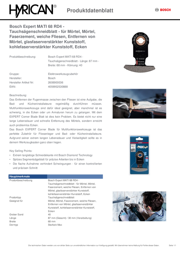 Ostrze do multinarzędzia Bosch Accessories EXPERT Corner Blade MATI 68 RD4 2608900036 1 szt.
