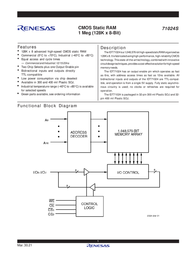 5.0V 128K x 8 Asynchronous Static RAM with Corner Power & Ground Pinout