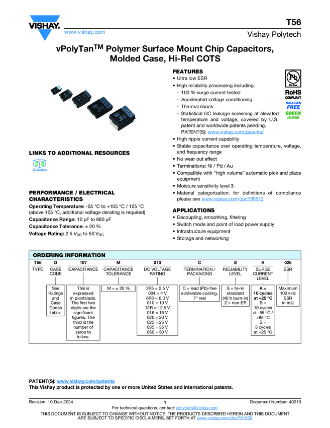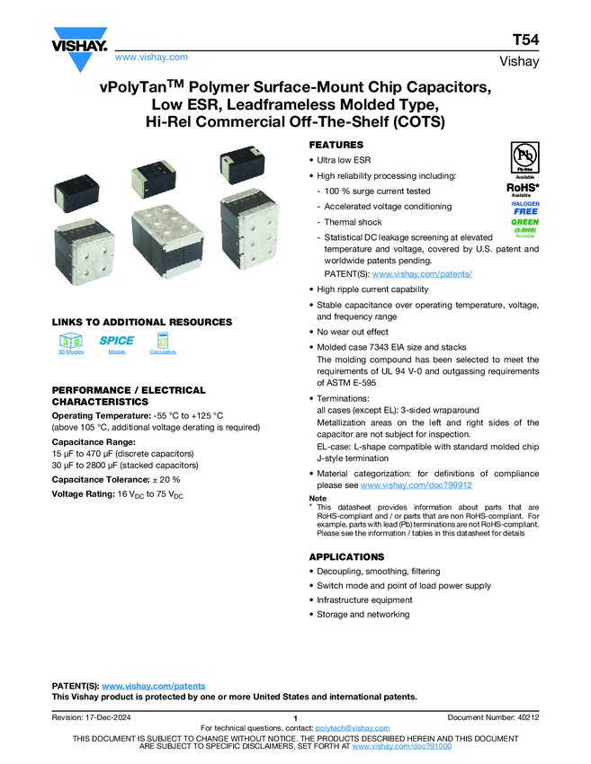 vPolyTanTM Polymer Surface-Mount Chip Capacitors, Low ESR, Leadframeless Molded Type, Hi-Rel Commercial Off-The-Shelf (COTS)