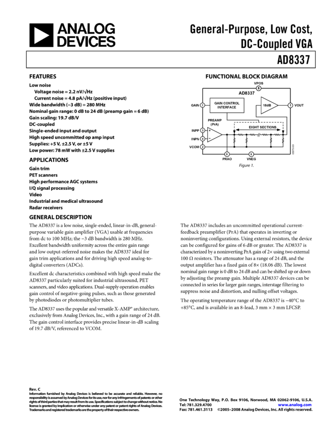 AD8337: General-Purpose, Low Cost, DC-Coupled VGA