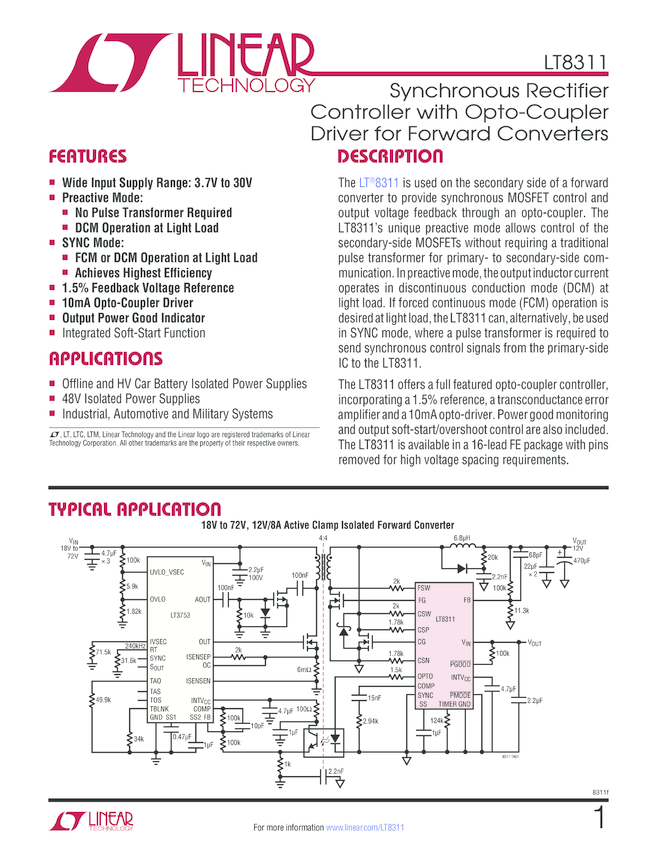 Synchronous Rectifier Controller with Opto-Coupler Driver for Forward Converters