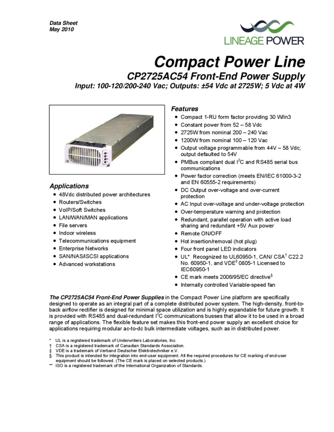 AC/DC Power Supply Single-OUT 54V 22.2A/50.5A/53.4A 1200W/2725W