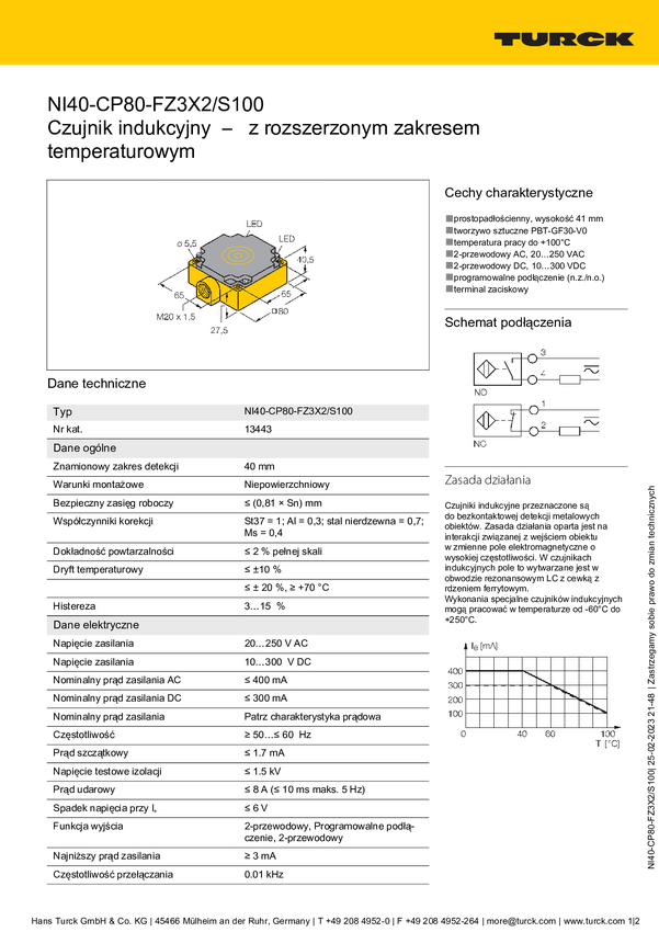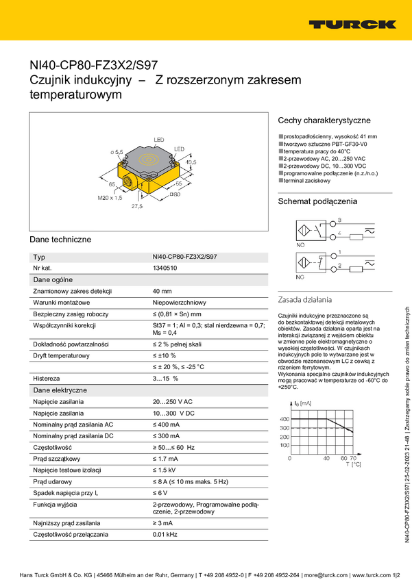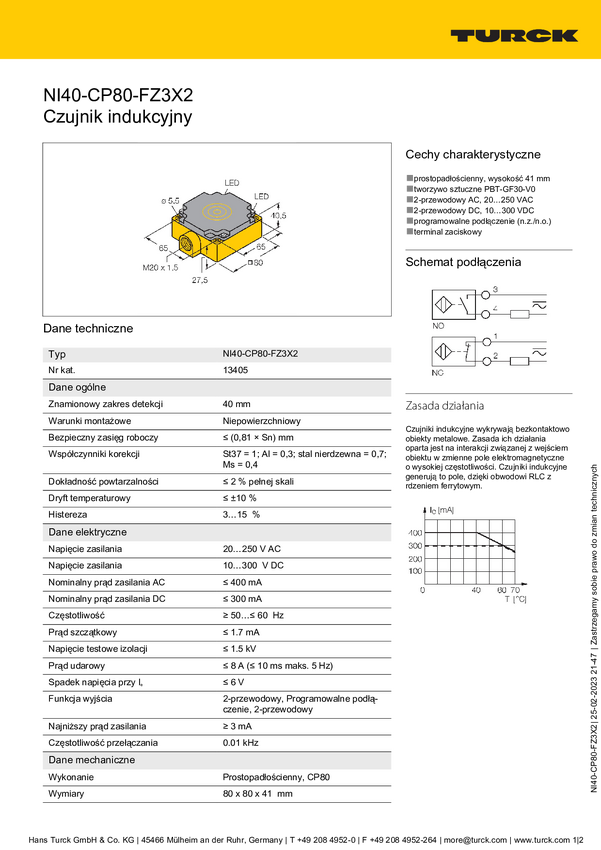 Turck Czujnik indukcyjny nie podtynkowy NI40-CP80-FZ3X2