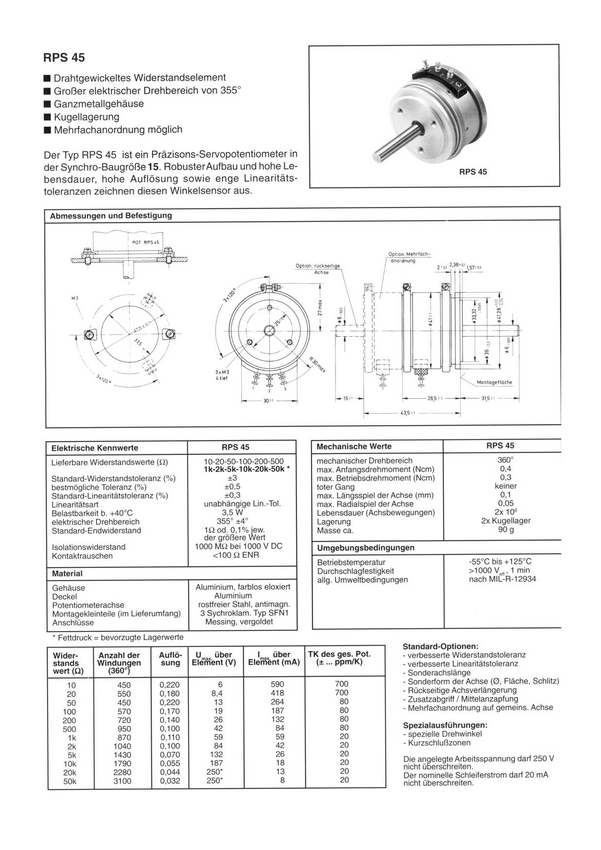 potencjometr drutowy; servo; lin.0,5%; tol. 3% 1 obrotowy; średnica 76,2mm; ośka 6mm trwałość=2.000.000 obr; moc 6W patzr cp80