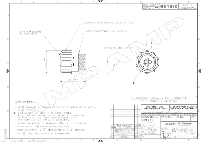 Gniazdo CPC TE Connectivity 182648-01/182647-1, z nakrętką, 4-pin, 5000 MOhm