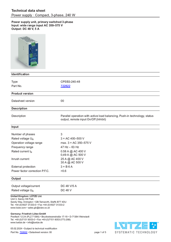 Zasilacz przełączający Lütze CPSB3-240-48 722822 48 V/DC 5 A 240 W