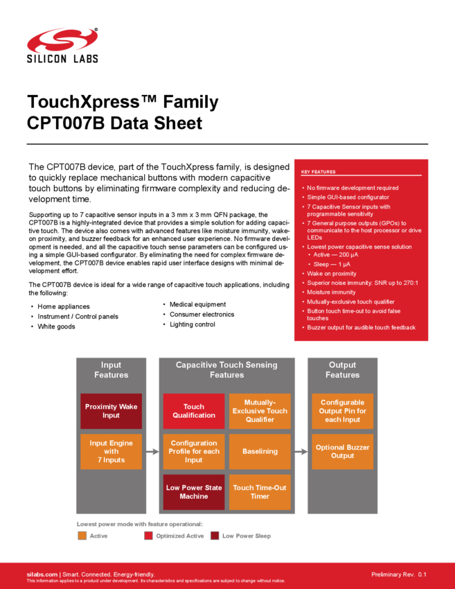 Touch Sensor Capacitive 7 Key 1.8V to 3.6V Surface Mount 20-Pin QFN