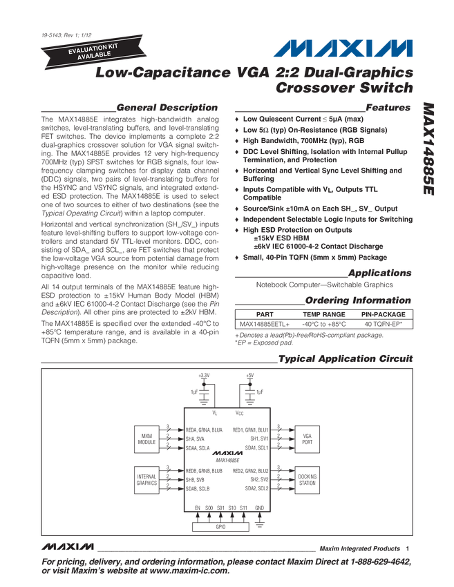 Low-Capacitance VGA 2:2 Dual-Graphics Crossover Switch