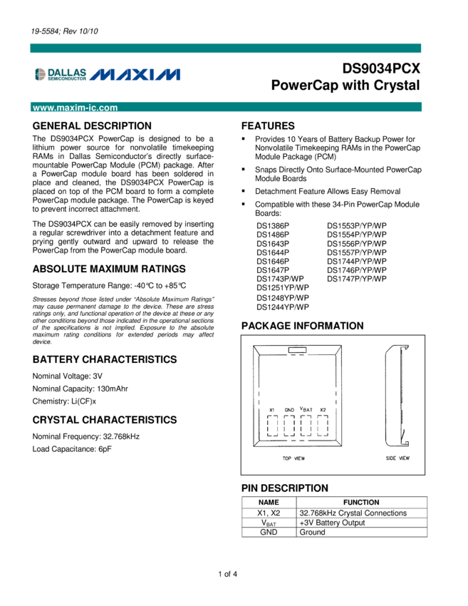 DS9034I-PCX, DS9034PCX PowerCap with Crystal