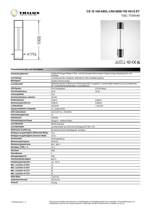 Reflektor ogrodowy LED Trilux CS19 100AB2L 7723240 10 W 1200 lm