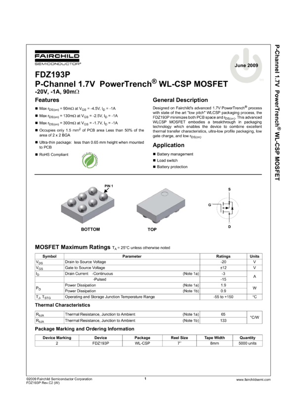 -20V P-Channel 1.7V PowerTrench® WL-CSP MOSFET