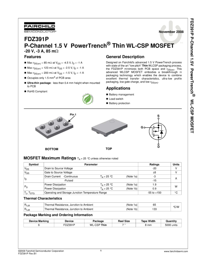 20V P-Channel 1.5V Specified PowerTrench® Thin WL-CSP MOSFET
