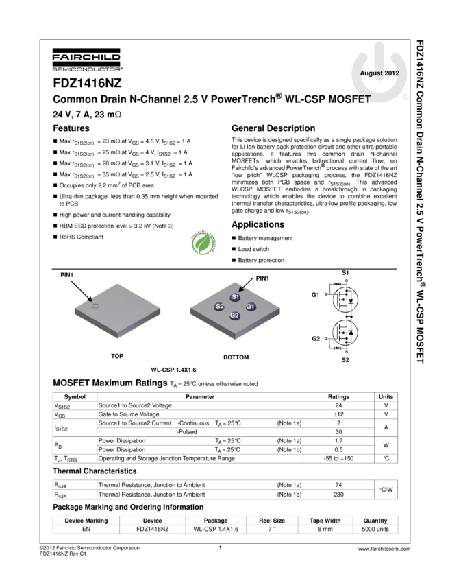 24V Common Drain N-Channel 2.5 V PowerTrench® WL-CSP MOSFET