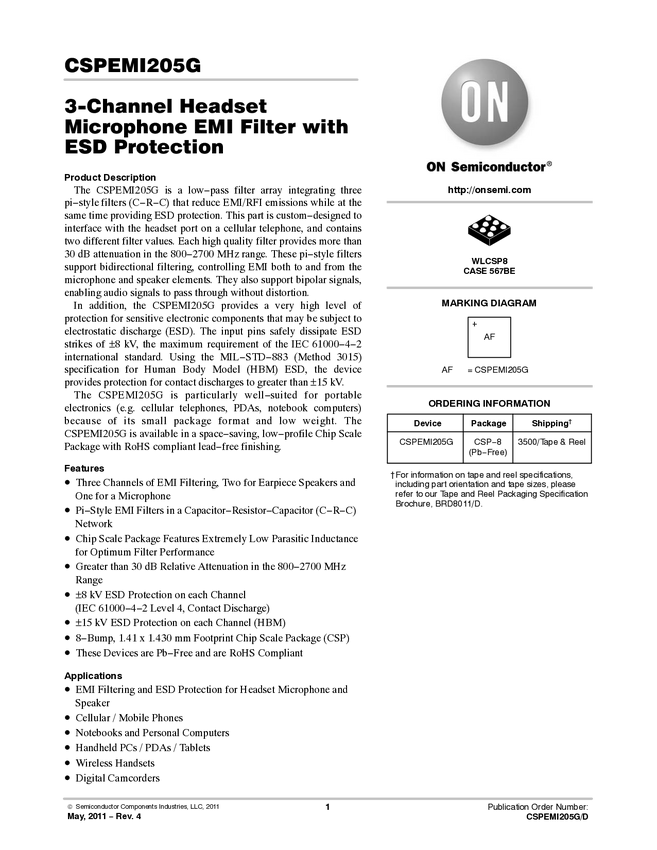 EMI Filter with ESD Protection, Headset Speaker