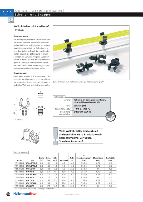 Uchwyt Hellermann Tyton CTC4.5 FT6LG-HIRHS-BK