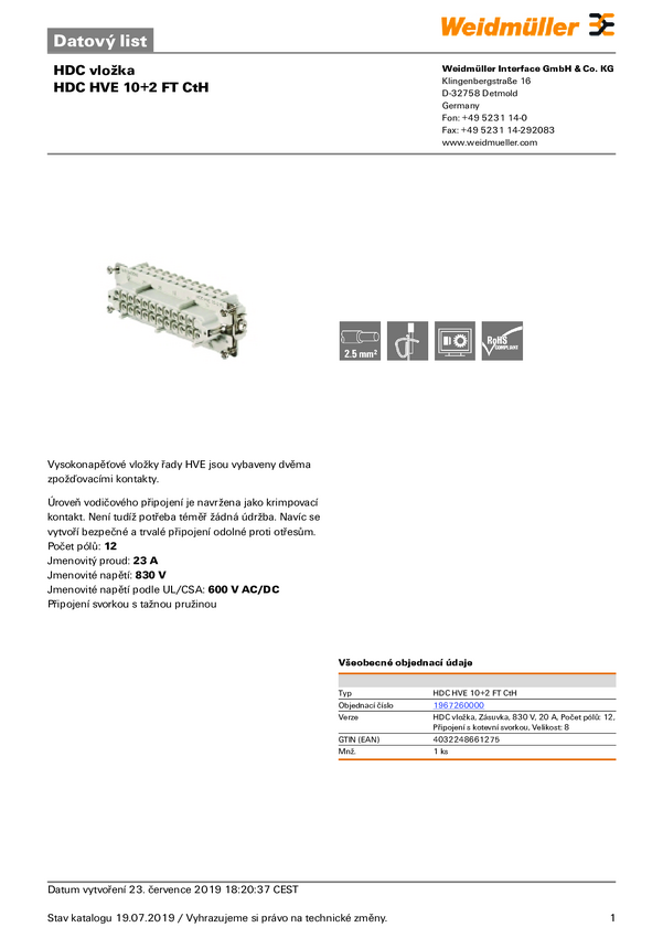 Weidmüller HDC HVE 10+2 FT CTH 1967260000 Wkładka złącza żeńskiego 1 szt.