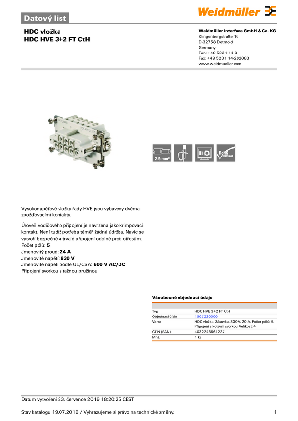 Weidmüller HDC HVE 3+2 FT CTH 1967220000 Wkładka złącza żeńskiego 1 szt.
