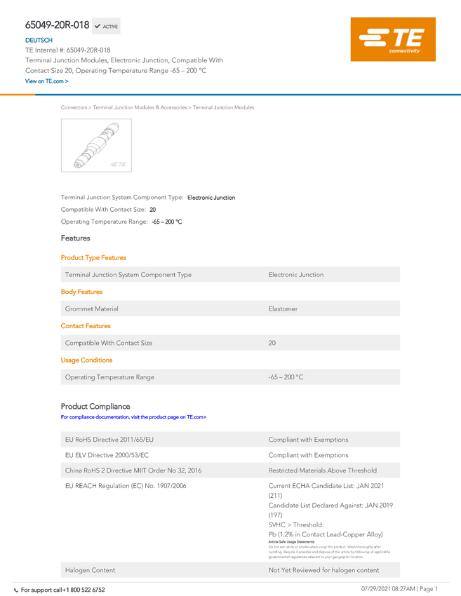 TE Connectivity TE DE CTJ AS81714 Series II 65049-20R-018, 1x -02050006741290