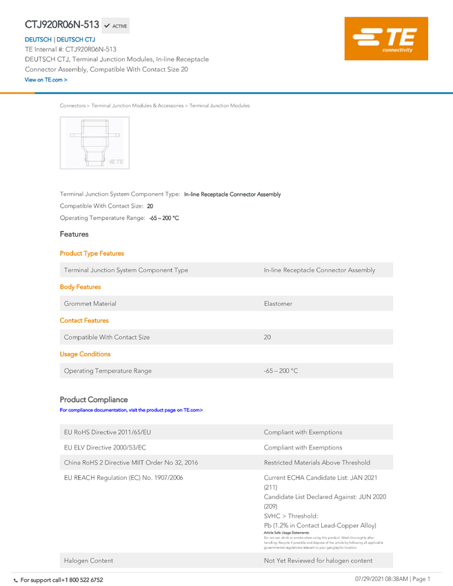 TE Connectivity TE DE CTJ AS81714 Series II CTJ920R06N-513, 1x -02050006741504