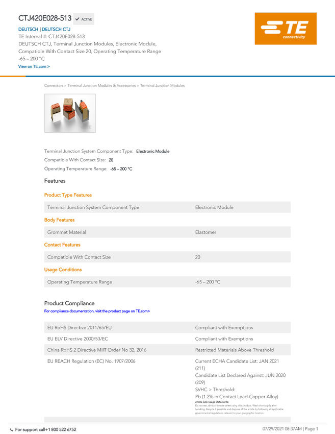 TE Connectivity TE DE CTJ AS81714 Series II CTJ420E184-513, 1x -02050006738603