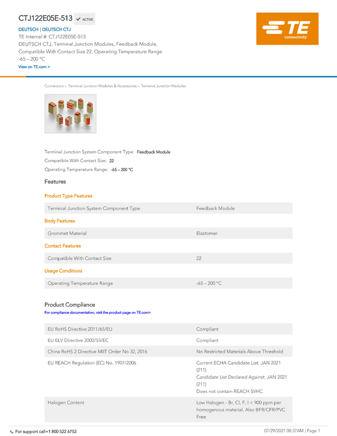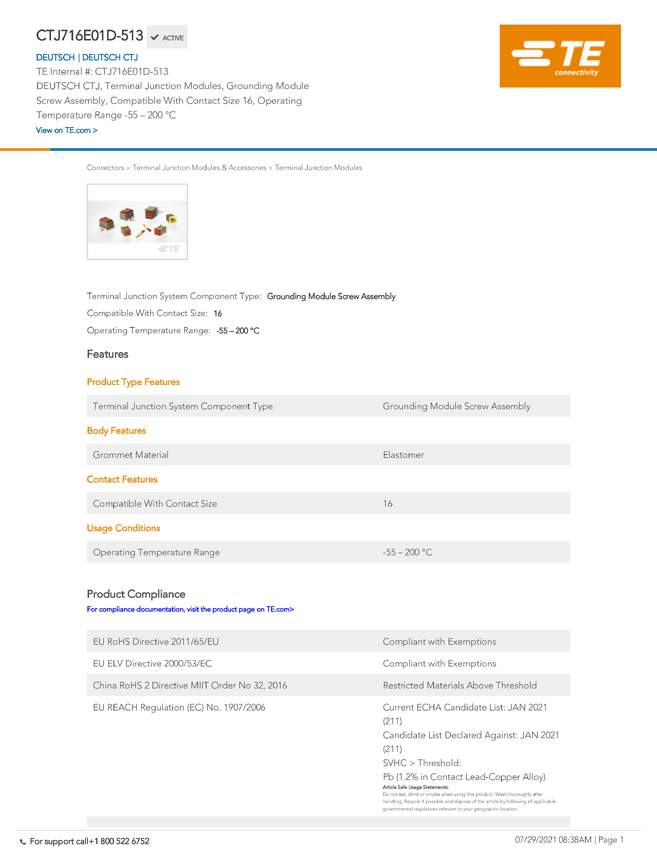 TE Connectivity TE DE CTJ AS81714 Series II CTJ716E01D-513, 1x -02050006738627
