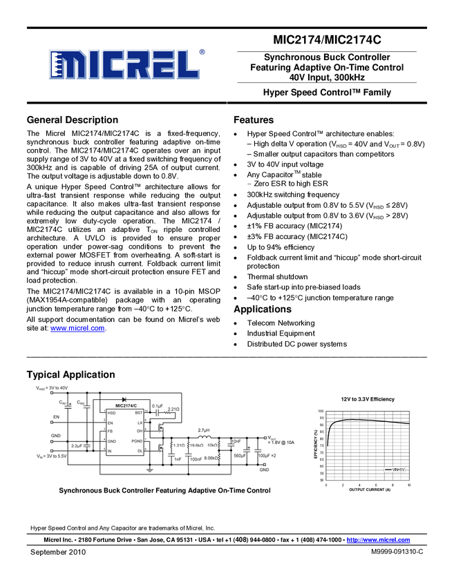 MIC2174/2174C - Synchronous Buck Controller Feat Adaptive On-Time Ctrl 40V Input
