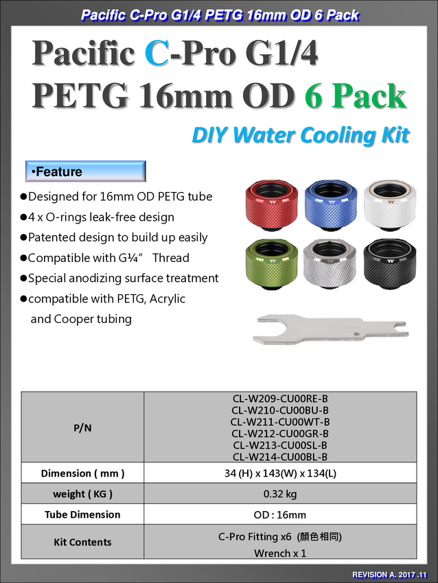 Armatura chłodzenia wodnego Thermaltake Pacific C-PRO G1/4 PETG Tube 16mm OD Compression – Blue (6-Pack Fittings)