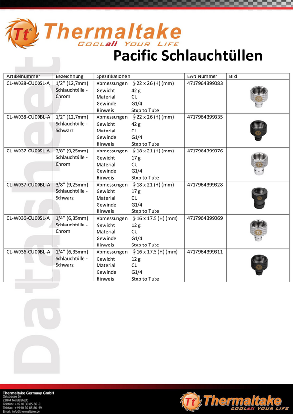 Armatura chłodzenia wodnego Thermaltake Pacific 1/2” (12.7 mm) Fill-port – Black