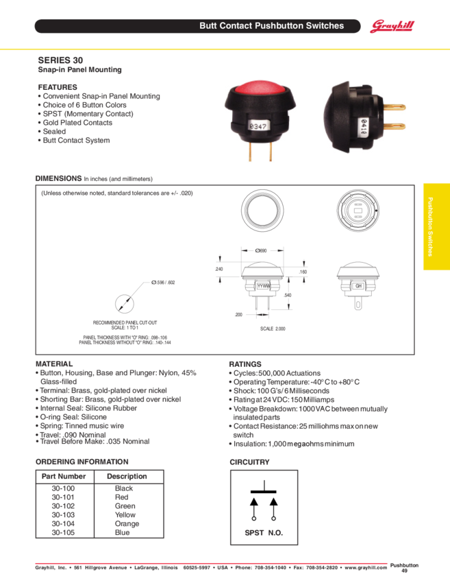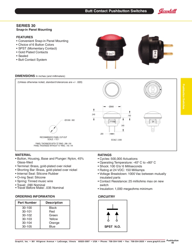 Switch Push Button N.O. SPST Round Curved Button 0.25A 48VDC Maintained Contact Solder Lug Panel Mount