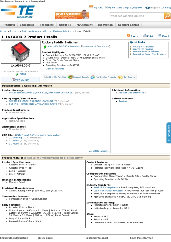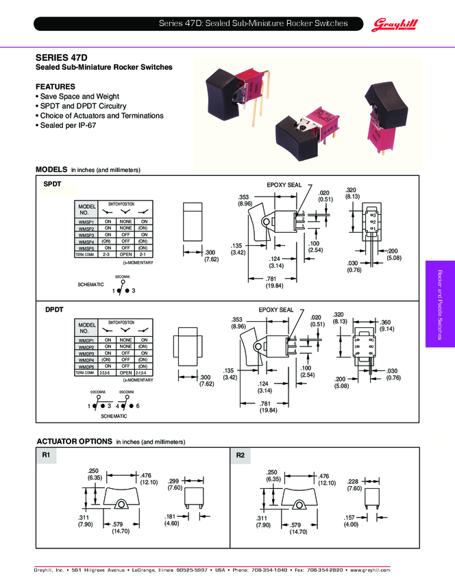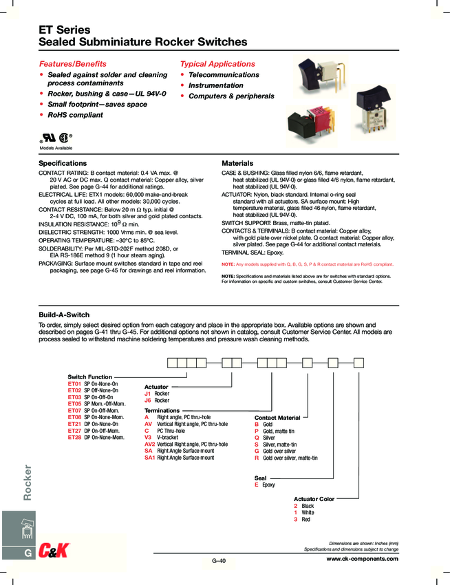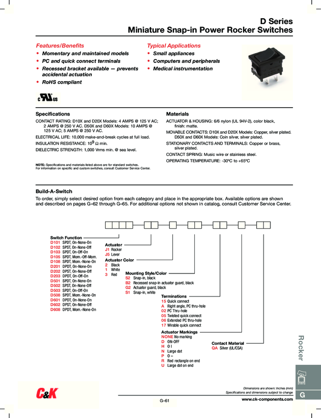 Switch Rocker ON None ON SPDT PC Pins Curved Rocker 20VAC 20VDC 0.4VA