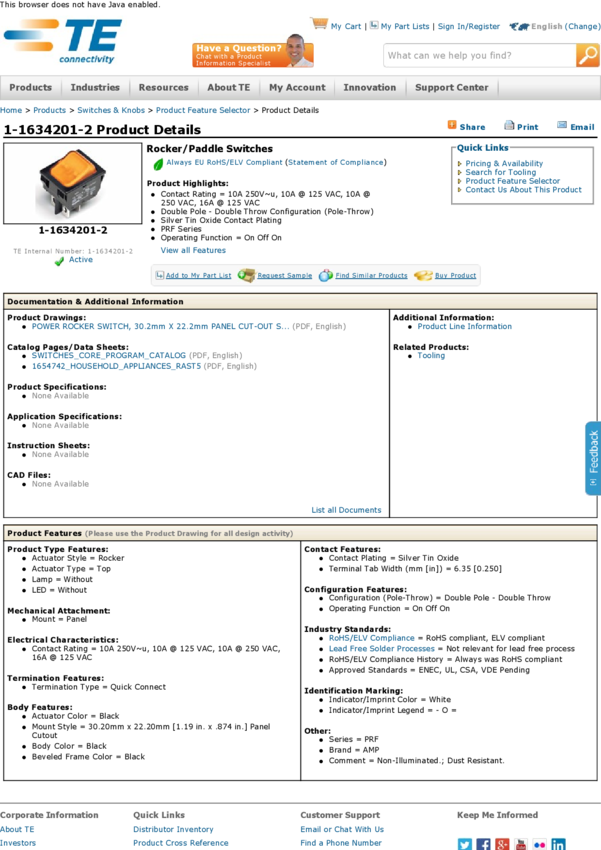 Switch Rocker ON None ON SPDT PC Pins Curved Rocker 16A 250VAC 372.85VA