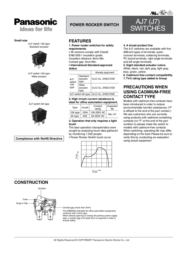 Switch Rocker ON None ON DPDT Wire Lug Curved Rocker 3A 125VAC 28VDC 100000Cycle