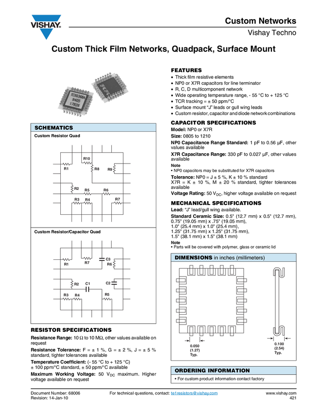 Custom Thick Film Networks, Quadpack, Surface Mount