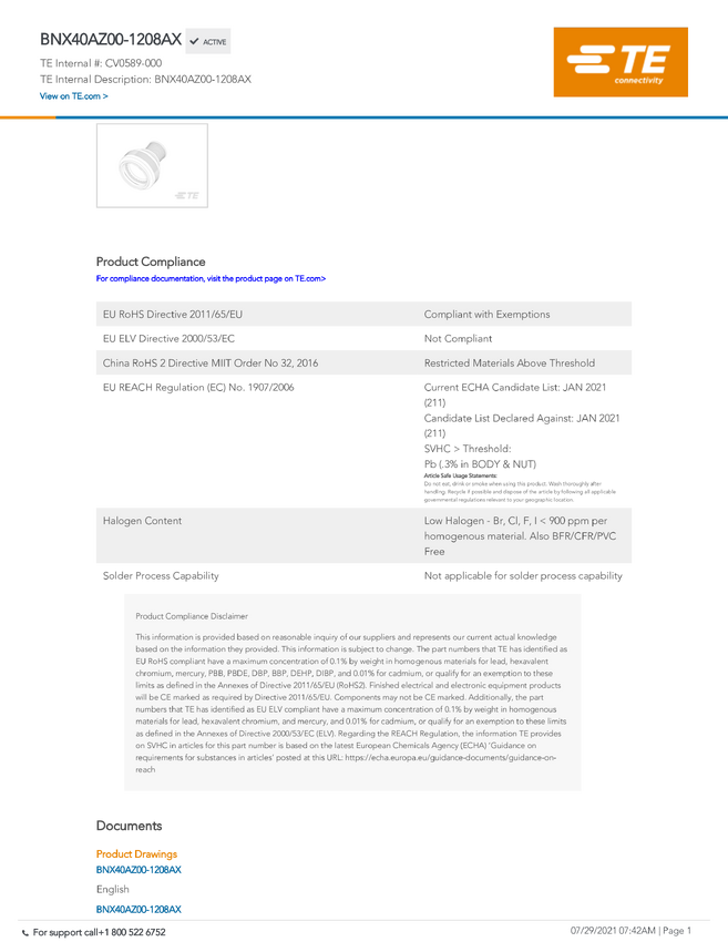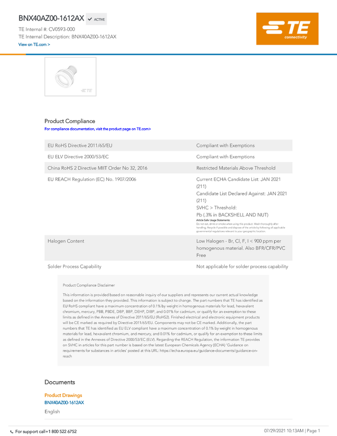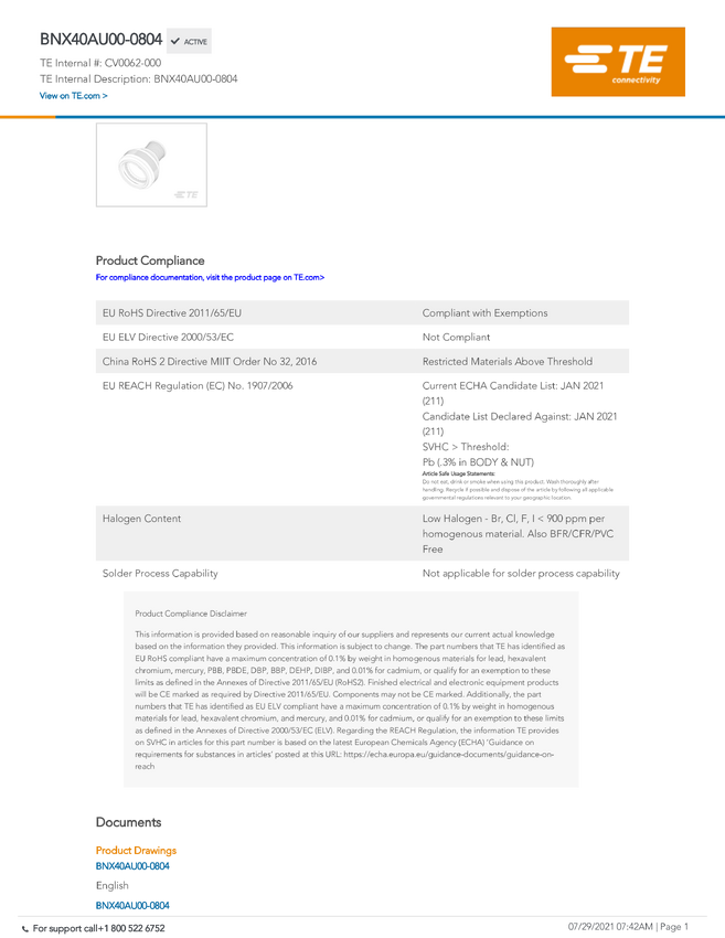 TE Connectivity TE RAY Adaptors CV0606-000, 1x -02050006741849