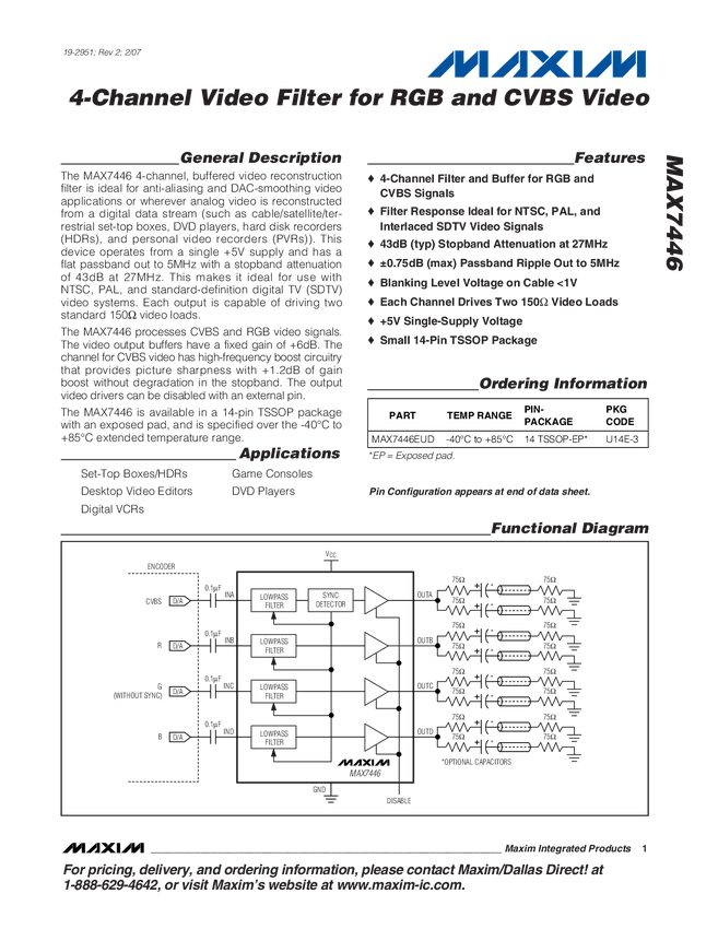 4-Channel RGB Video Filter with Asynchronous CVBS Input