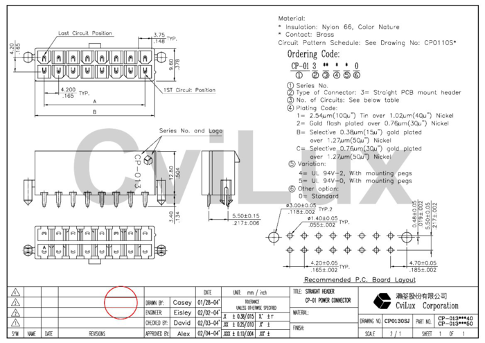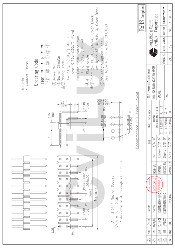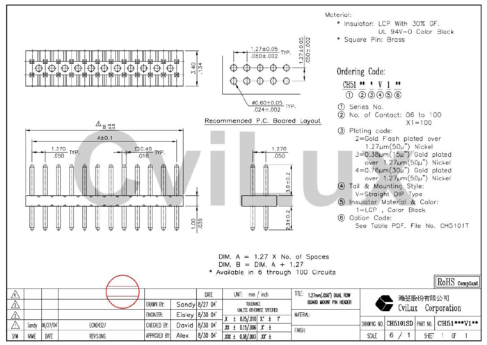 Listwa 2x40 kołków, kątowa, C=6.0 D=3.0 E=1.5, , CviLux