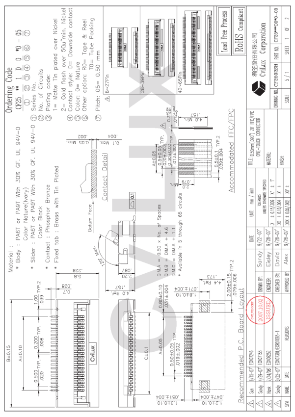 Złącze do tasmy FFC, 14-stykowe, poziome, SMD, CvilLux