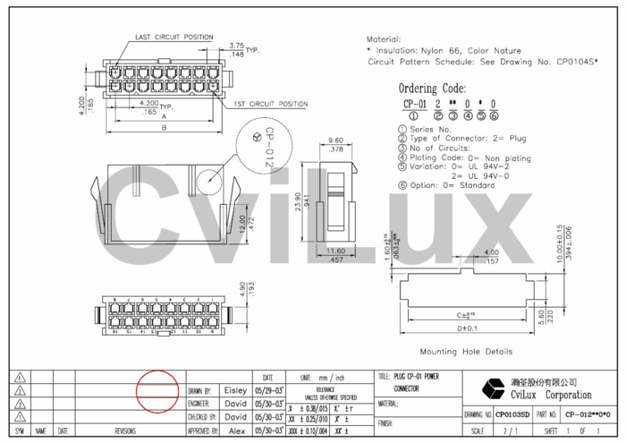 Korpus złącza męskiego, jednorzędowe 2-stykowe, 1x2, Cvilux