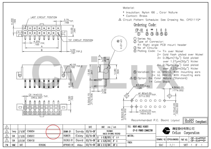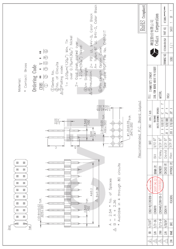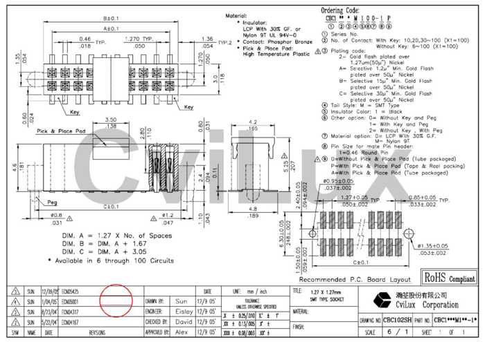 Listwa 2x5 styków, SMT, bez kołków mocujących do PCB, z uchwytem pick & place do montażu auto, h=4.6mm, CviLux, 800szt./rolka