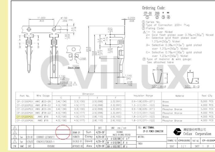 Metalowy styk, męski, mosiężny, do wbudowania w korpusy złącz MRX559, , CviLux