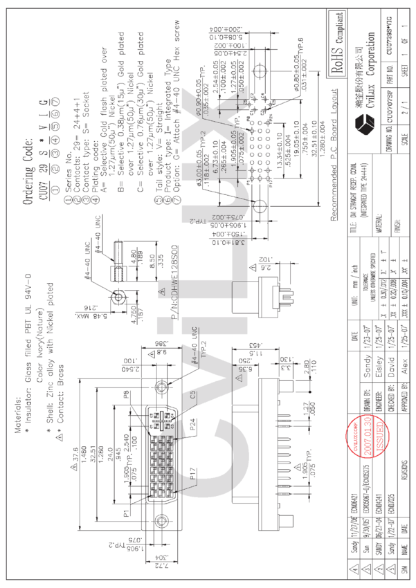 Złącze żeńskie, DVI-I (), 24+5 bieg, , 40V AC (r.m.s.), , do druku ,, CviLux