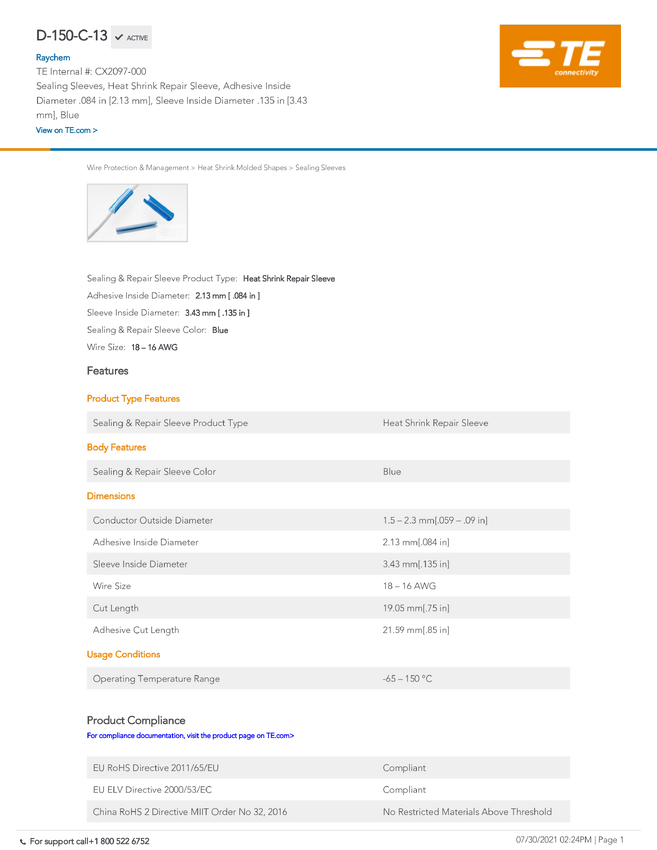 TE Connectivity TE RAY Devices Miscellaneous CX2097-000, 1 szt.