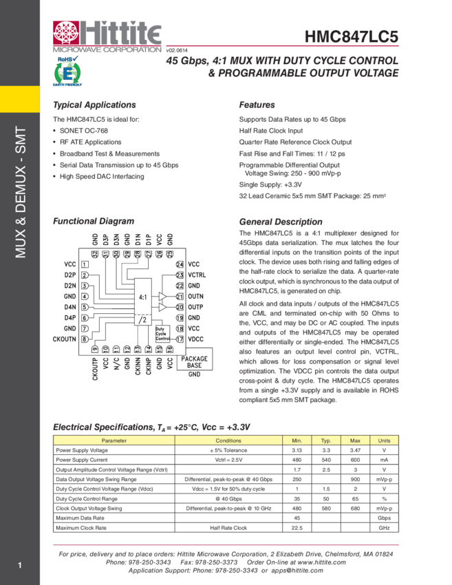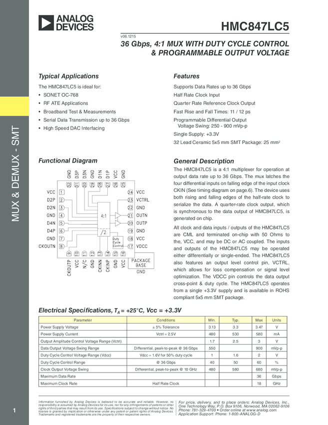 36 Gbps, 4:1 Mux SMT with Duty Cycle Control & Programmable Output Voltage