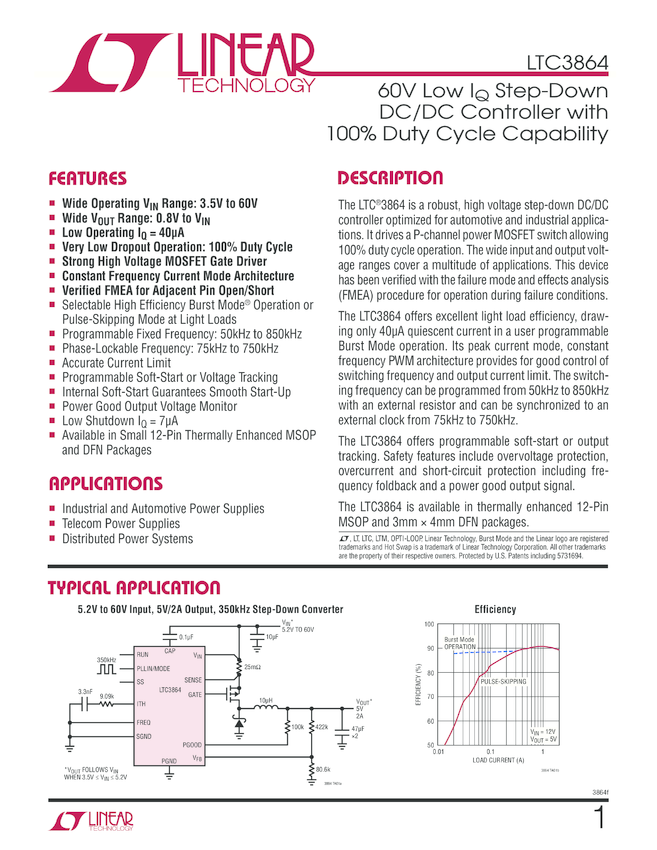 60V Low IQ Step-Down DC/DC Controller with 100% Duty Cycle Capability