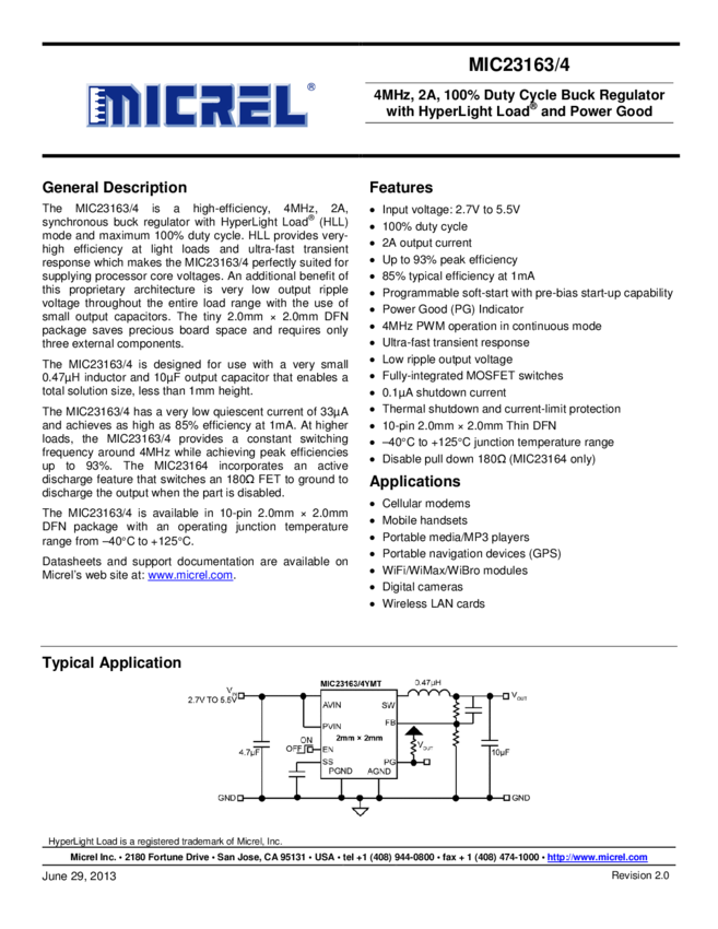 MIC23163/4 - 4MHz 2A 100% Duty Cycle Buck Reg with HyperLight Load® & Power Good (11/05/2015)
